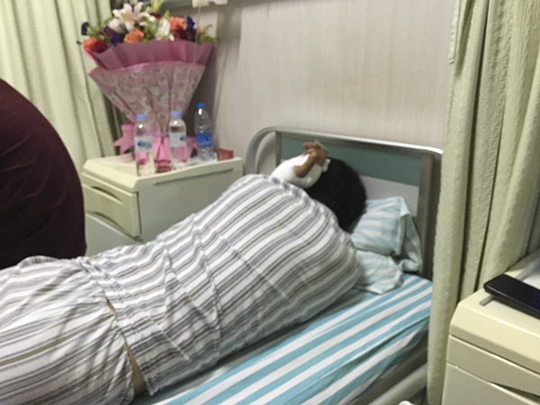 7月3日,刘新力躺在病床上,用胳膊捂着脸,右手还缠着绷带。他的精神状态显得很烦躁,不愿接受采访。