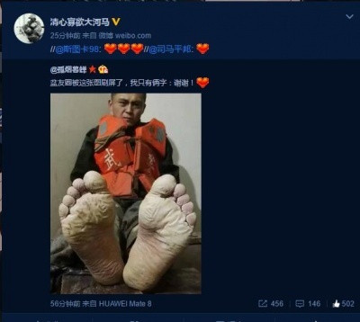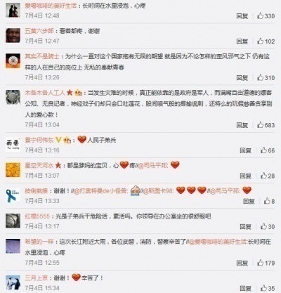 《合肥晚报》的官方微信也刊发了题为《你的脚,刺痛我们柔软的心!暴雨中,他们朝着最危险的地方前进!致敬最可爱的人!》的报道。